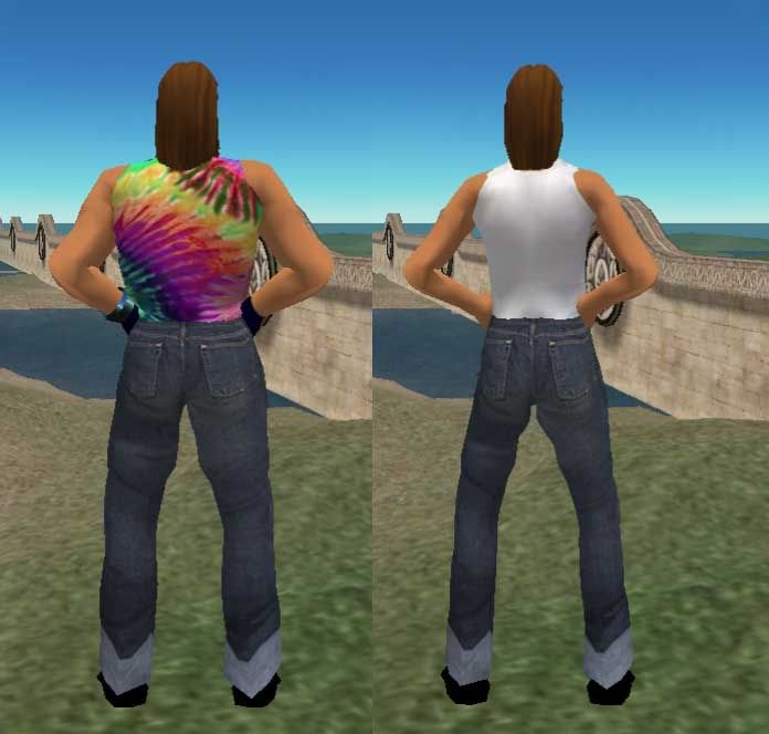 Before we can answer that you need to show a side picture so that we can verify that they are not in fact wearing mullets. Er, what's the thing with the mullets? The shoulders look fine even with a bald avatar. The only distortion I see is that inner tips of the shoulder blades jut out just a tiny bit more than they would in reality, but not much. You can check out the shoulders in 3D. Just punch in the numbers I supplied. The neck , chest , and abdominal areas can be easily adjusted to taste. |