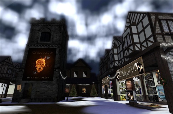 The Dark Isle OOC market is above a brand new role playing sim that is gathering plenty of attention, (new world notes review - http://nwn.blogs.com/nwn/2008/12/new-world-tab-2.html#more ) and we already have big name merchants such as Husky and Calibar and Trident - the market is beautifully detailed with a OOC English pub, a skating rink for the holidays and snow on the ground...