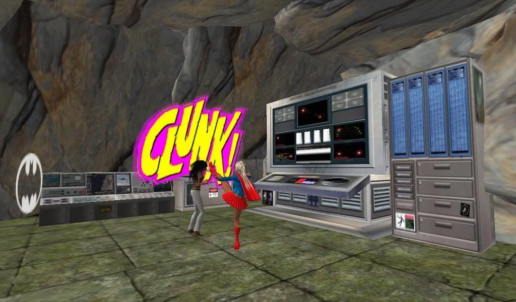 Once inside, you'll find a small replica Batcave, where you can fight villains and evildoers using the poseballs. Click the Bat symbol for some added effects!