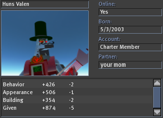 Awww Timeless, how can they do that to you!! Your the man  Lemme and my sis at them and we will give them a good willowing  I hear your pain, on my first day IW, I got triple neg rated and I hadn't even opened my mouth, and was still in Ahern in noob clothes, so I lost my rag and asked him why he did it, he simply said that he felt like it, but then took them back and apologised... Then I noticed about 3 weeks ago I have one neg for appearence... *prolly from ahern when I got my warning for indecency  *, but I mean c'mon I only EVER go nakey if I warn ppl *like the charity fundraiser* and I don't dress in hideous outfits Well to sum it up, it all sucks I agree the system to some respect is cool, but why have it? surely there must be another way for the Lindens to calculate what bonu's we deserve, then we don't have all this negative argy bargy.. Big hugs to you Timeless your a top guy, and cute to boot