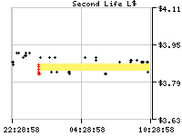 If you watch the graphs and other data on the site, whenever there is a "big fall" in the current minimum selling price, there is usually signs that it's all due to a single individual or group selling a large quantity at either a noticably reduced price, or in a spread starting at the (then current) price and ranging downward. Usually, as soon as that rouge batch of orders has been filled, the price returns to its usual range. Just think how many "the L$ value is falling" threads that have been started in the last few months, reporting that the price has dropped from the mid-3.90's down to the low-3.80's. It lasts for 4-5 days then goes back to what it was. Only to be followed a few weeks later by another "the L$ value is falling" thread when another individual or group sells a large quantity. Not that this observation will cause any reduction in the number of such threads, since we have a one-to-many condition: Many may know that the market does this regularly, but all it takes is one who doesn't to start a thread. But I post this for those that may be new and this is thier first of these threads. The sky is not falling... It might drop slighty, but it goes back up just as often. Data chart from the time of this post:  Note the column of red here where an entire range of orders was placed all at one time. This pushed the minimum price lower but left a large gap (yellow). The gap WILL fill in as the red orders are filled and the lower-end froth orders slip back upwards. (Unless yet another large order is placed like this one in red, in which case this condition could last a little longer -- But that's not a sustainable senario.)