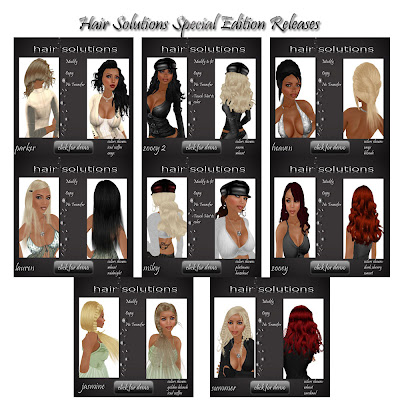 Hair Solutions has just released 8 styles that are special edition. Why are they special? Two reasons: 1) They are the only hair to be released with those textures 2) 5 of them were at this year's Hair Fair