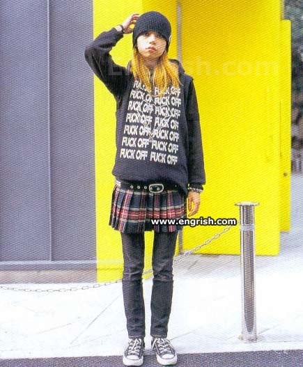 This is a photo from a Japanese fashion magazine. As you can see, the infamous F word hardly means the same thing to all people. In our society it's become a crutch for those of limited vocabulary, and it's now so overused as to have no real meaning at all. In other cultures it has become a way to be cool. Being offended by those who overuse this or any other word ad naseum is a whole other game though. Morality may be the basis of the whole social contract but it's not the trademark of one who thinks for themselves. You can also chose not to play the game.