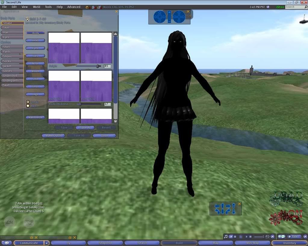 I have tried all the above as mentioned....except for changing my video drivers...I dont see how that could be an issue...since my other male avatars are normal... I tried the unparalyzing textures and it did nothing.... My avatar just came up looking normal for a sec and went back to looking black For right now my av looks ok....but when i change clothes or go to Change appearance... i get this  My change appearance looks all wierd... Now just a sec ago...Trebor is all black This feels like a virus maybe? but not on my PC....i check for Viruses with AVG daily Ive been looking for older Video drivers...no luck, but if im having the issue with the black Avatar...why do other see Gubi as all black too?