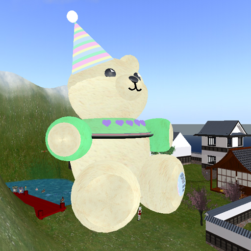 This is the largest Linden Bear in my collection - the special-edition Birthday Bear, from SL5B!