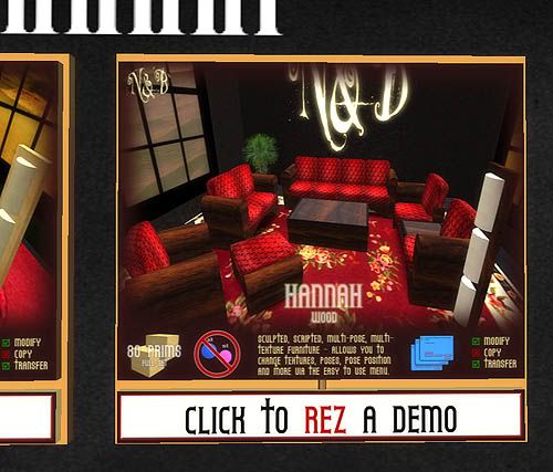 From: Sling Trebuchet Mu first reaction to the No Poseballs icon was that it menat No *Couples* Poseballs/animations - because of the Pink and Blue in the icon. That was my second thought. But to prevent any confusion, maybe the icon should have different colors than blue and pink for 'no poseballs at all' and keep the pink and blue for 'no couples poseballs'. In any case, I think Nina had a brilliant idea, well-executed. I'd think that all furniture makers would be interested in this (and to toss a few L$s her way would be gracious!)