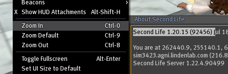 There may be a terminology problem somewhere. The View menu shows three Zoom commands, "Zoom In", "Zoom Default", and "Zoom Out", with keystroke shortcuts of Ctrl-0, Ctrl-9, and Ctrl-8. So it's not exactly a totally clear cut case that Ctrl-0 doesn't zoom in. The Second Life interface says it does, in version Second Life 1.20.15 (92456) .  The listed 4 ways to zoom ( alt-mouse, scroll wheel, on-screen controls, and scripts) don't include Alt-UpArrow or Alt-DownArrow, which seem to do the same thing as the scroll wheel, so far as I can tell. Does the zoom lens on a camera work like the scroll wheel or like Ctrl-0 and Ctrl-8? Ctrl-0 can be quite useful for picture taking, regardless of what name you give to what it does. You can also zoom in and out using the editor dialog.  You can also zoom in and out on the map, but I guess that doesn't really count.  You can also make your avatar travel rapidly from one spot to another, thereby zooming in and out of a certain area, but that really really doesn't count.