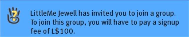 From: LittleMe Jewell This sounds like when you landed, they automatically present the GROUP Join Blue Box. I just tested this with my alt and my group and it DOES show the fee in that blue box and you get an option of whether or not to join:  And if you click the "Accept" button, you then get a confirmation dialog box. If you did not properly read that stuff, it is your fault. If you did, then file a support ticket with LL giving them all details. it didnt confirm or notify that there's a group join fee its just like that typical blue pop up group join invite then i clicked join...anyway im done sending the group owner a notecard
