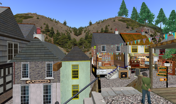 Why do people spend a fair amount of time setting up a nice home, with trees, landscaping etc. and then spoil it all by putting up a huge megaprim backdrop with an out-of scale photo of an RL landsscape? I've never seem one of these screens that works well. Because my neighbor at the time built a store that was textured like this. ![]() |