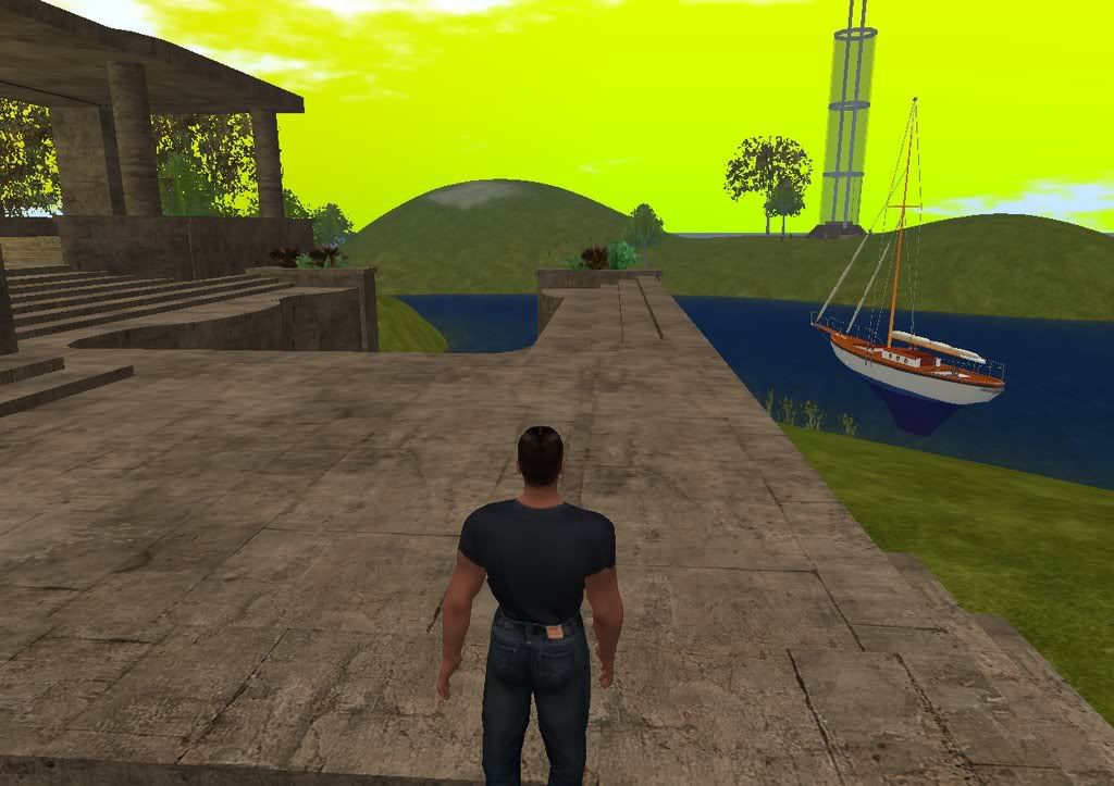 Windlight's been working for a little while now, in fact the latest client release - 1.19.1.4 - upgrades your puter to Windlight - like it or not. I've tried the client several times now but keep re-installing an older version - 1.19.0.5 - due to technical problems. Today however I decided that as the Windlight version will probably become the mandatory version in the not too distant future..and I really need to get my head round this thing.. whatever it takes. After considerable tweaking and fiddling with the numerous settings I still seem to have a few visual problems..which is where I'm hoping the experts will step in..that's you by the way.. Observe the pics..the first taken while using the earlier client..and looks.. quite nice The same pic taken shortly after using the Windlight client show a slightly different scene.... Whatever I do I can't seem to get rid of this yellow sky..actually I can..if I switch off Atmospheric Shaders it looks just fine but water then ceases to be transparent..and I like see thro water!! Also..and unfortunately I haven't been able to snap any pics of this..I seem to get these wierd angular-triangular objects flashing about my avi as he moves about. Imagine walking about with a bunch of large triangles attached to you..that's it. Anyway..anyone got any advice..it would be appreciated.. Perre..  P.S. My thanks to Macphisto Angelus..as you can see your advice worked!!