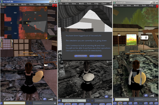 I managed to get two sessions of SL running, same avatar, same grid, same time. ![]() Same bat channel I guess also. At this point the one on the left have severe problems from an interactivity point of view, but it's great if one is looking for some virtual peace and quiet. ==== hmmm.... now i have a redmapped, a crashed, and a working session at the same time. ![]() The one in the middle is the death camp. ![]() |