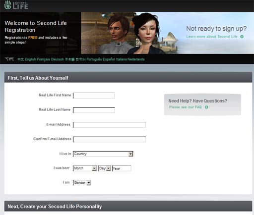 I noticed a promising change when I looked at the New Account creation page today:  I don't know if everyone gets this now, but the new account page I got asked first for real life name, an e-mail address, country, birthdate and gender. Now, they probably don't do squat to validate anything but the e-mail address. And they still don't ask if you have other accounts already, or give you a way to legitimately link your accounts together. But it's a major step in the right direction, if you ask me. Are we finally going to see an end to completely anonymous account creation? Can you sign in as Elvis Prestley, and get it to work? What do you think? Should LL go with this new sign-up page, and require the third-party registration sites to also send in that information to LL as part of any new account creation request?