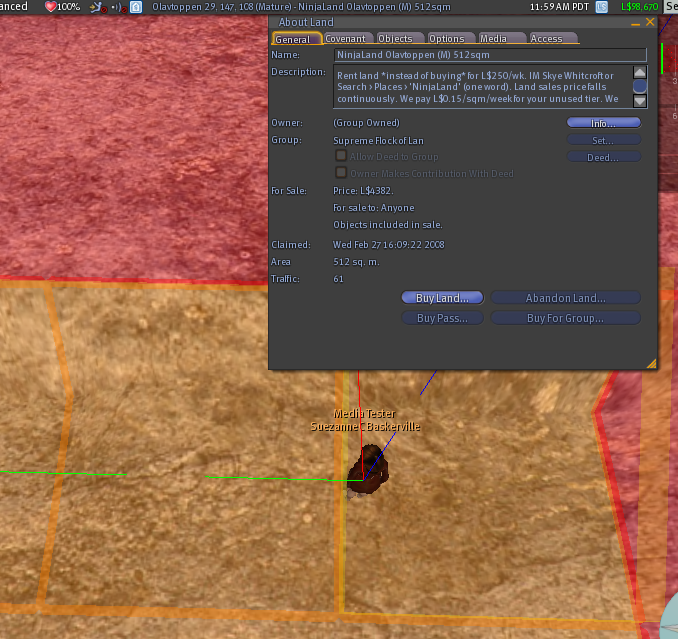I was starting to look at 512 sqm parcels in the land search. I clicked teleport and the parcel said 512 sqm in the about land dialog area field. It looked like a 16 sqm parcel. The parcel next to it appears to be the same size and shows 16 sqm. If memory serves, parcels can be non-contiguous. How would you know where the rest of the parcel is? This isn't some sort of bug with the wrong area showing for a parcel, is it? http://i198.photobucket.com/albums/aa245/SuezanneC-Baskerville/Second%20Life/SecondLife-twoparcelssamesizeonesay.png