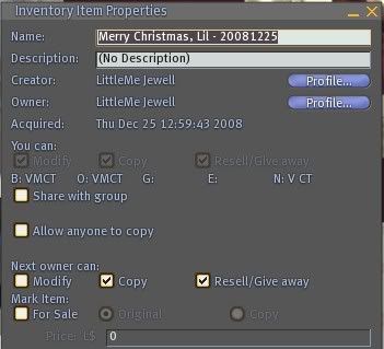 If it is something you uploaded, when you right click it and select the properties, either 'copy' or 'transfer' must be checked -- you cannot have both unchecked. That is simply the permission rules that apply to all items.