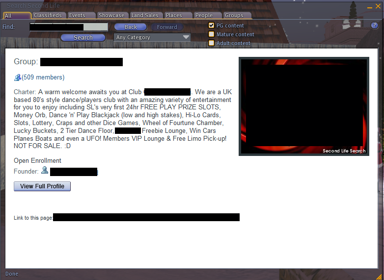 Those words were banned as search terms (don't know if they still are - did you find it by searching for them)... maybe this club got a pass on this description because they clearly listed that they were free play games. It could also be due to this being a result from a GROUP, not a PLACE listing. Hard to tell without input from a Linden.