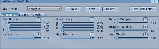 I do wish we could manually enter numbers. My sliders steadfastly refuse to land on some of these numbers. I'm trying to set Max Altitude to 368 and it jumps from 349 to 376 with nothing in between. Oh well, I can edit the XML file by hand I suppose. If I'm going to name it Nostalgia it should be the identical settings.