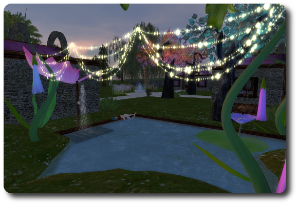 I like the sparkly light strings in your garden, Nimue! I live in an Elven-style house made by Isablan, designed specifically to fit my very steep mountain parcel.