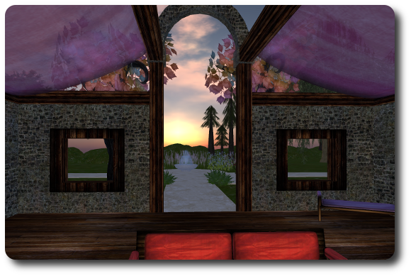 Very impressive home, Nimue. My home is the Egotherpy Centre in Yosu sim. I live in an apartment on the upper floor, while the ground floor houses the display/office area and my little shop. There's a back garden with an underground bunker under the lawn, where I have my SL snapshot gallery. I also have a structure 900m up in the sky, which is a building platform with the Egotherapy chillout club suspended beneath it. I have lived in Yosu since 2006 and my current home has been more or less as it is now since it was built over a year ago. The previous Egotherpy Centre was destroyed in a terrible deletion accident. I'm lucky in that my home borders a protected Linden route, so I can have a nice frontage. Click the link in my signature to see a pic of my home.
