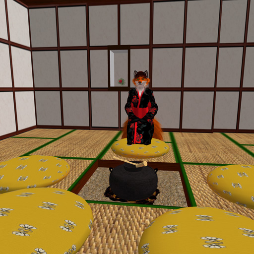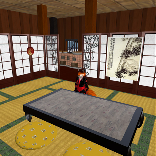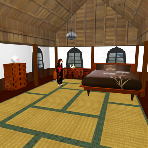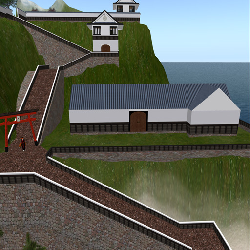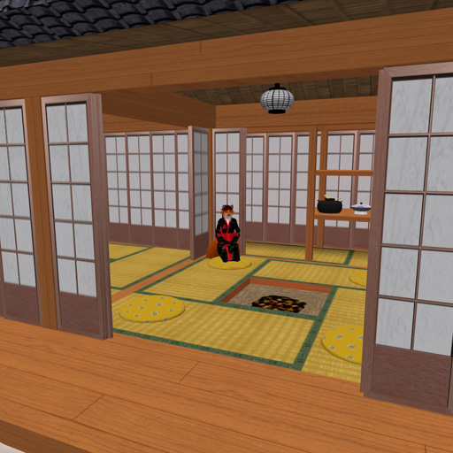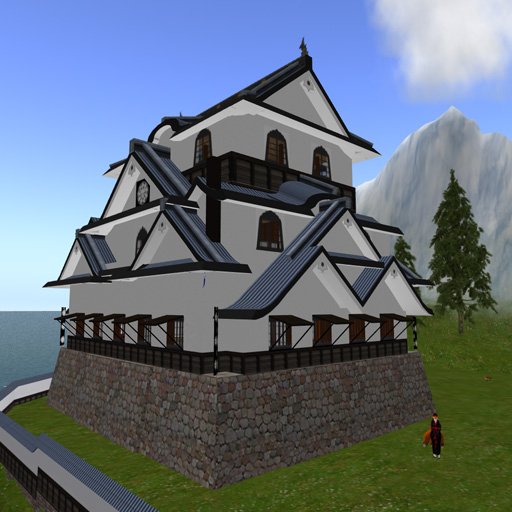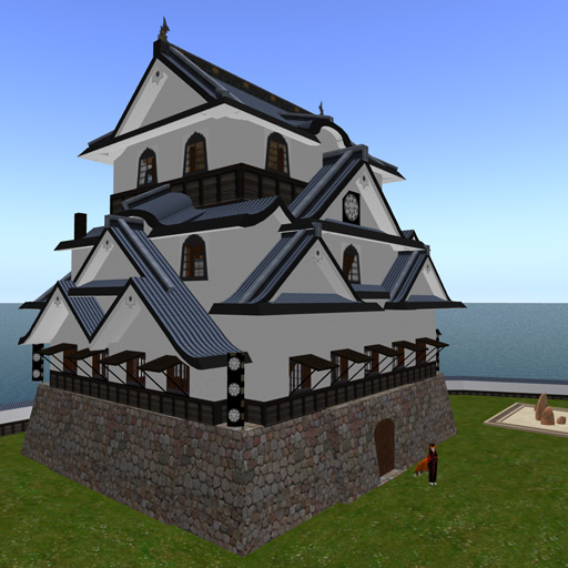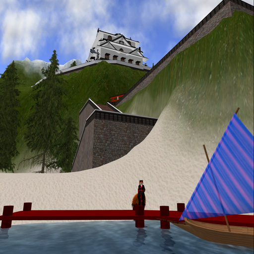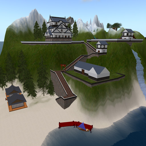 My home is on a large parcel in a private sim, a little over 1/4 of the sim, that I have set up as a replica of Hikone Castle in Japan, and other Edo-period Japanese buildings. I built the vast majority of what you see in these images.  Distant view - everything you see here is on my land... except for the dark grey peak by the roof of the white castle, at the skyline.  Inside one of the two small guest houses on the beach.  Down at the boat dock and swimming beach, looking up at Hikone Castle.  Halfway up the hill, the stables, similar to the ones that the actual castle has.
