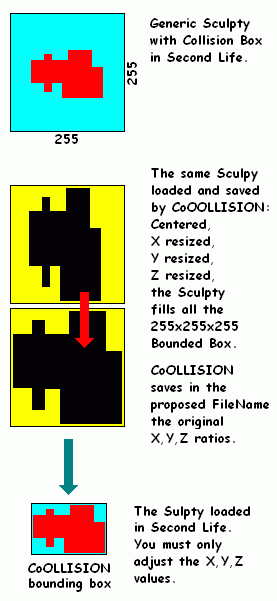yes but starts from 0 and ends at 255 if your scuply starts at 10 and ends at 230 the collision box is oversized in irregular shapes it is really bigger SL uses alway 0-255 for x, y, z Ii is not ok for me, this is the reason of my work. My tool first centers the shape at 128,128,128, sooner it stretchs all the borders to 0 and 255 and saving says the values on xys for each stretch for your reverse settings in SL world