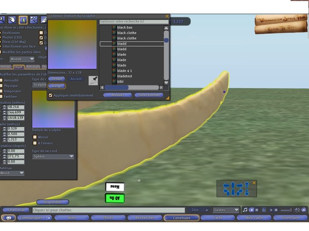 i don't know what are blong and how to use this tool. i only need the blade in 1 prim ,i have already the others part (non sculpty). From: Chosen Few By the way, interesting screenshot. Is that French?