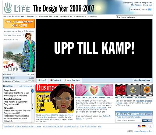 From: Chri5 Somme SL please update your homepage and make it more recent, we're sick of seeing the stupid yellow, red, and white business week article with your glamour girl on the cover. There was a change. Used to have a heading that said "Virtual Lindens = Real Money" or somethign like that. With the latest TOS and Update it was changed. That little change has sent shivers up many a back in SL.