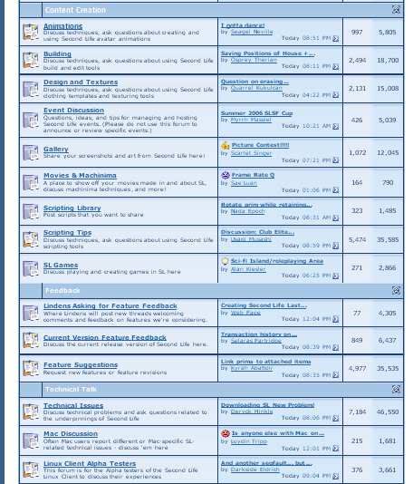 From: Foolish Frost Now THAT's a nice idea! Groups have thier own forums, inside of SL. The group officers are mods and control the forum, allowing long term discussion.