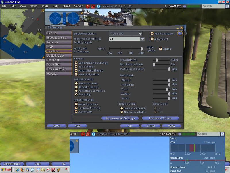 all depends exactly where you are for ppl to compare gfx cards/systems Where are the draw distance settings in the Windlight viewer? I was under the assumption that the "Quality and Performance" settings of Low, Mid, HIgh, and Ultra dictated the draw distance.