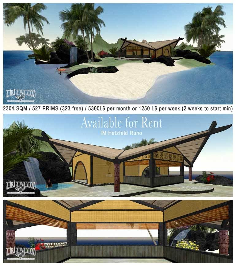A fully builded (no prefab...) beach in corner of the tiki tattoo sim is available for rent.
