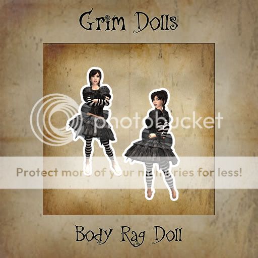 New from ::Grim Dolls:: is a Black Lollita Rag Doll dress. Very stylish for the Doll in all of us. Skirt Top Pants and Poof Sleves.