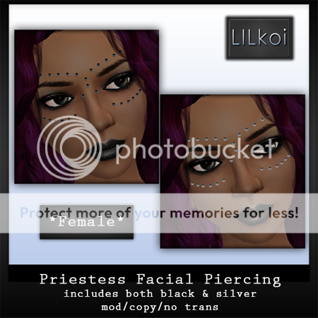 I *finally* put the new jewelry sets and piercing I had up at the Jewelry Expo on sale at the store. The Falling Jewelry Set, Geometry Bracelet Set, and Priestess Facial Piercing are now available for purchase!