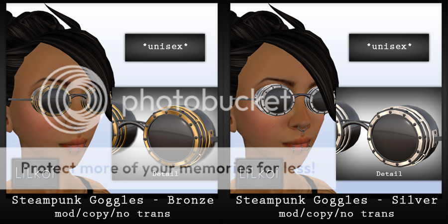 I also made steampunk goggles, available in both bronze and silver. These goggles are unisex!