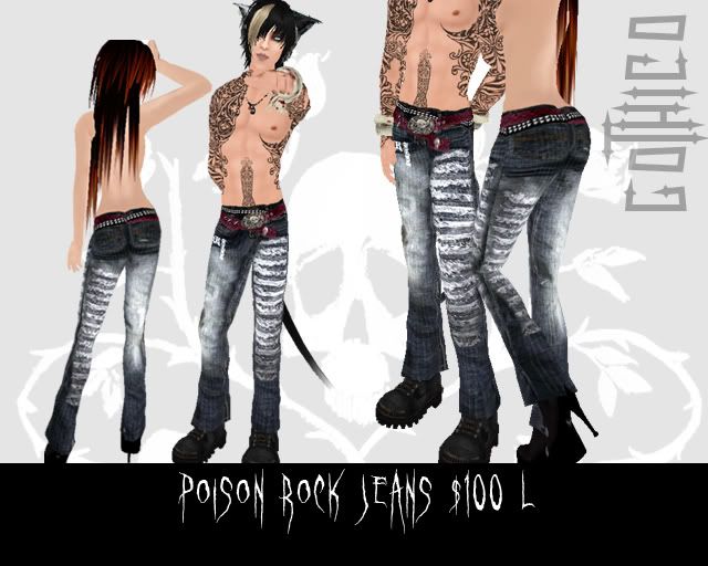Per request of many of you, i made the Ophelia dress in other colors. Here they are, you can find it in 6 different colors all with the same rich details. Blue, Purple, White, Red, Pink and Green. The set has pants so you can wear the top as a corset, i put an add-on so you can wear it with the pants or with the skirt, the long sleeve jacket comes in a separated layer too, so you can do a mix and match of this dress and get 3 or more outfits of it     Also i have a special offer for the members of my Goth1c0 group, i made some cute jeans, for the group they are 10L, the regular price is 100L so check them out   Hope you like them!! <3 Kei