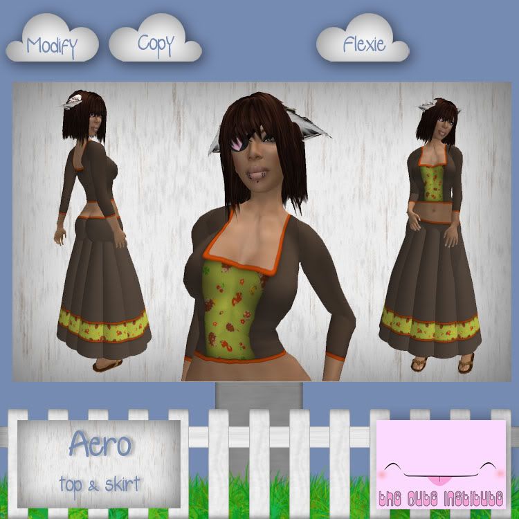 I'm flashing back to the 70's with this release. 6 brand new outfits (only 4 shown here) for you ladies today. 3/4 sleeve tops & long skirts all with a vintage feel. Prints include hedgehogs, apples, daisies, mushrooms, owls and starfruit. Only available @ The Cute Institute's main location in Rawktacular. <p>