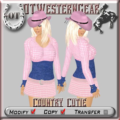 They come with both fringe and plain in each color. I had fun making these hope you have fun wearing them.The outfit is some of my favorite things: Pink, gingham and denim; called Country Cutie. It's a flexy skirt with sculpted collar, cuffs, babydoll attachment for the shirt (optional, if you wanna just wear the top with jeans this makes it really cute) and a prim belt.