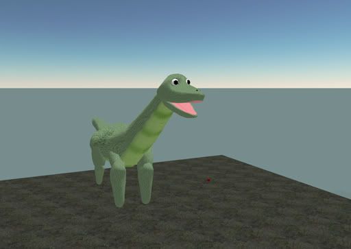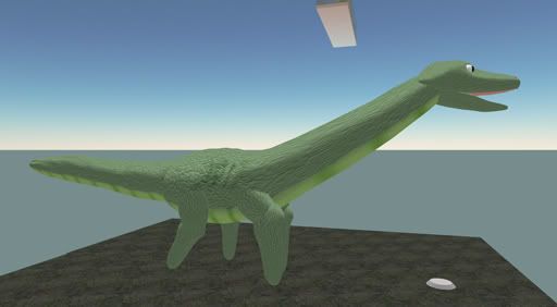 Just figured it out! HEh- I'm not one for sleeping much!  #1- it was BIG (brachiosaurus, anyone?) #2- Scaled it down a bit. But didnt help.... much #3- Moved everything to 0,0,0 coordinates before exporting, as I remember having to do this with some game mods I was working on. It Worked!  And Now I have me a Dinosaur! Well, almost.... the body is a bit different in SL, but its close enough!!