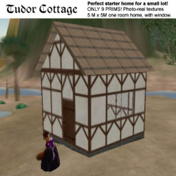From: Ceera Murakami Here is a low-prim building challenge for you... Make a low-prim one-room cottage, up to about 8M x 8M in size: With a prim floor A window in only one wall, that looks like the wall has actual thickness when you look through the window, and that looks right from both inside and outside the window. A door that hinges open and closed when touched, and that isn't hard up against one corner of the building. And the door doesn't go all the way to the top of the wall, either. A peaked roof, with eaves that overhang the walls of the structure on all 4 sides A cathedral ceiling inside, or a flat ceiling, your choice. And do all that with just 9 prims and one script. No sculpted prims. Just standard prims. It can be done. Give it a try, and see how close to 9 prims you can get. Show me your attempt some time, and I'll give you my version, which is styled as a Tudor cottage.  Nice House, I need more practice  , but when I finish my house I want your opinion, thx!!